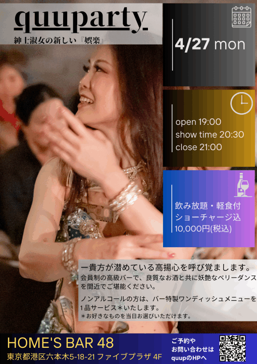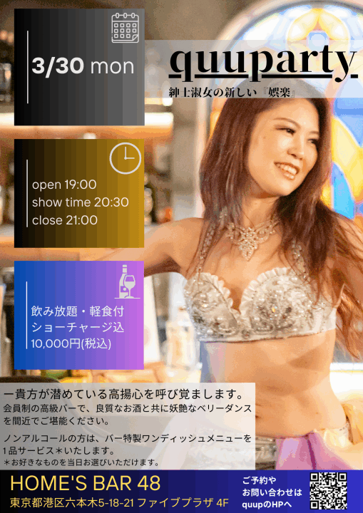 会員制高級バーの良質なお酒と共に、ベリーダンスをご堪能ください。